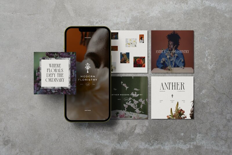 We kicked off by honing Anther Floristry's creative direction, spotlighting their fusion of avant-garde aesthetics and daring elegance to connect meaningfully with their target market. This led us to a distinctive brand identity, anchored by a standout logo that embodies their unique charm. We designed custom social media templates aimed at enhancing Anther's brand presence with a touch of edgy sophistication and artistic appeal.